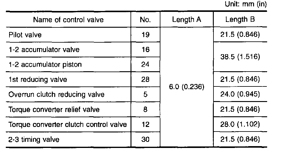 CONTROL VALVE UPPER BODYNumbers preceding valve springs correspond with those shown in Automatic Transmission/Transaxle; Specifications.