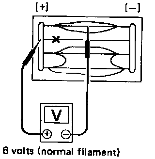 1. Attach probe circuit tester (in volt range) to middle portion of each filament.