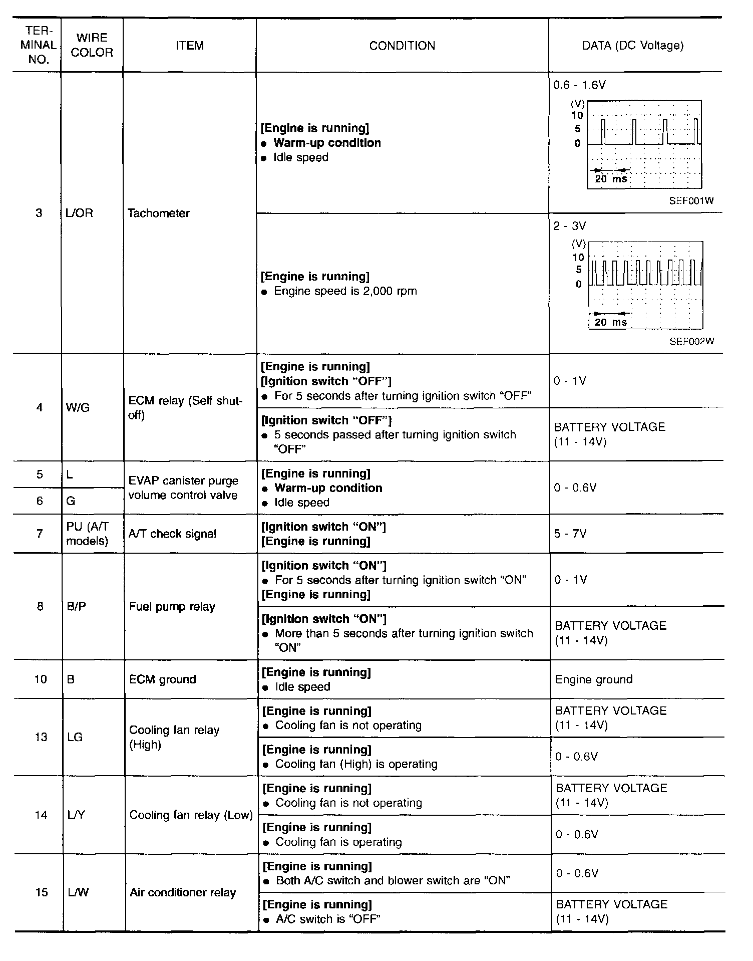 Specification data are reference values and are measured between each terminal and 43 (ECM ground).
