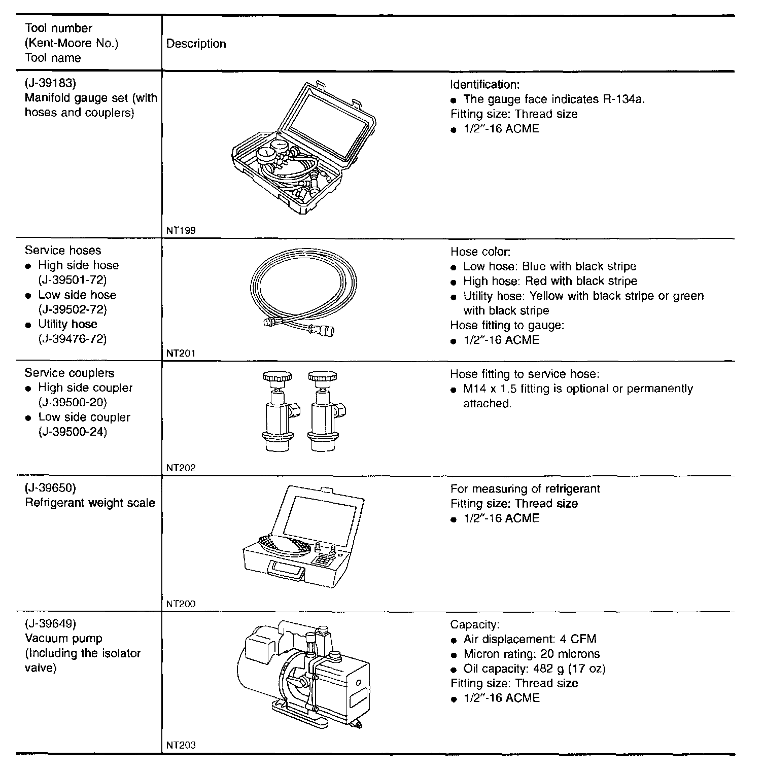 Refrigerant container fittings, service hose fittings and service equipment fittings (equipment which handles refrigerant and/or lubricant) are different between CFC-12 (R-12) and HFC-134a (R-134a). This is to avoid mixed use of the refrigerants/lubricant.