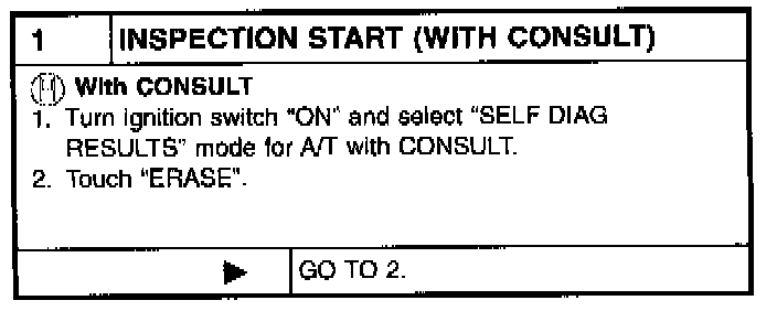 1. Turn ignition switch "ON" and select "DATA MONITOR" mode for A/T with CONSULT.