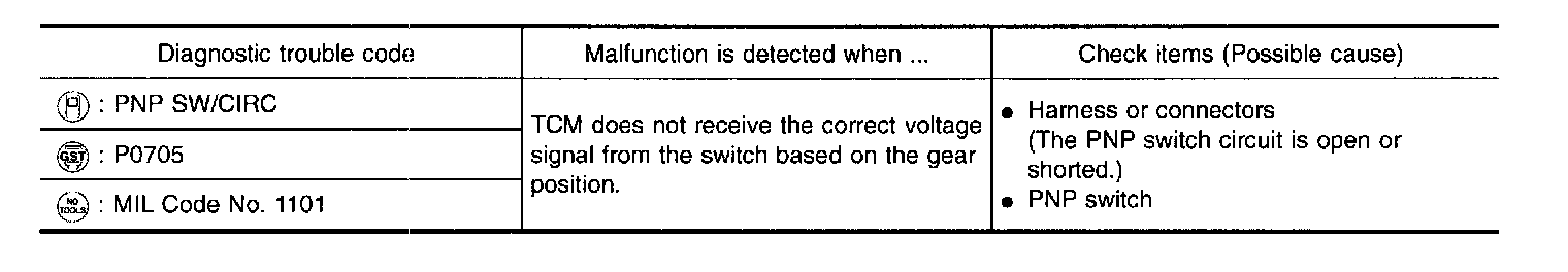 4. If NG on step 2, remove PNP switch from A/T and check continuity of PNP switch terminals. Refer to step 1.