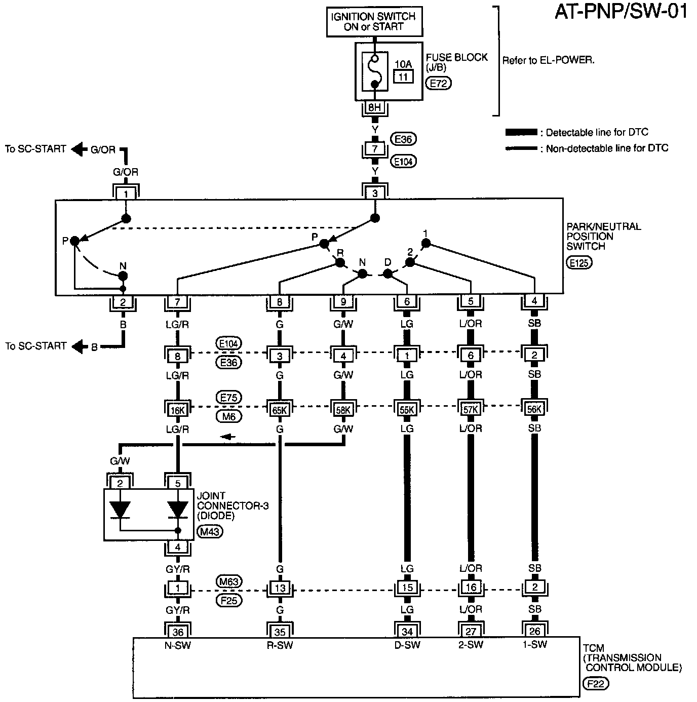 - The transmission range switch detects the selector lever position and sends a signal to the TCM.