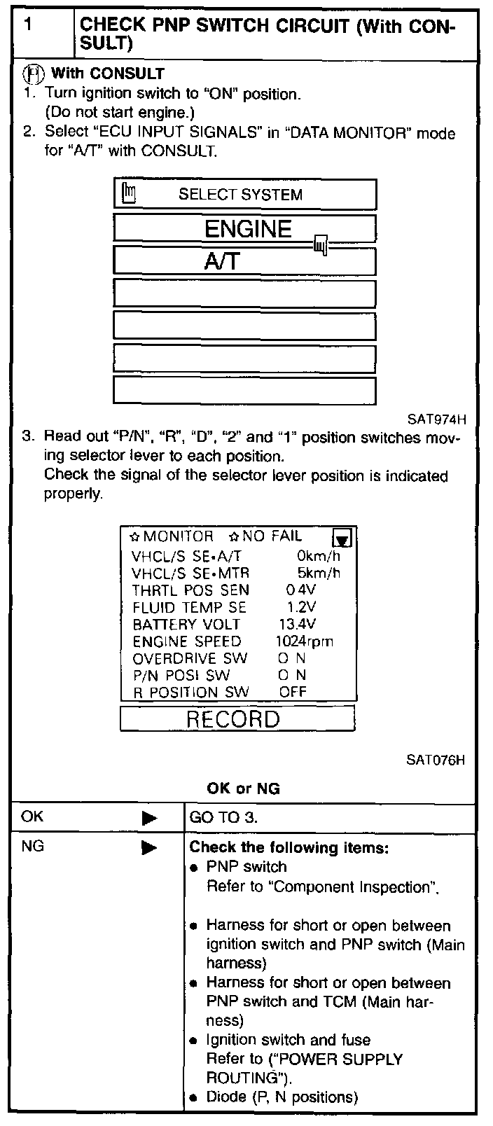 2 CHECK PNP SWITCH CIRCUIT (Without CONSULT):