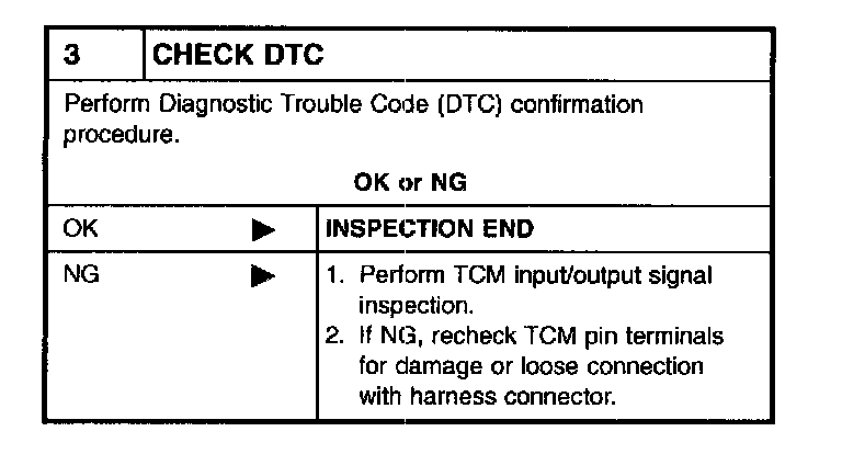 NOTE: If "DIAGNOSTIC TROUBLE CODE CONFIRMATION PROCEDURE" has been previously conducted, always turn ignition switch "OFF" and wait at least 5 seconds before conducting the next test.