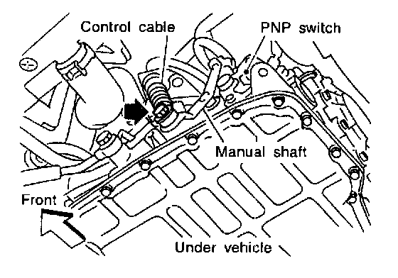 2. If NG, check again with control cable disconnected from manual shaft of A/T assembly. Refer to step 1.