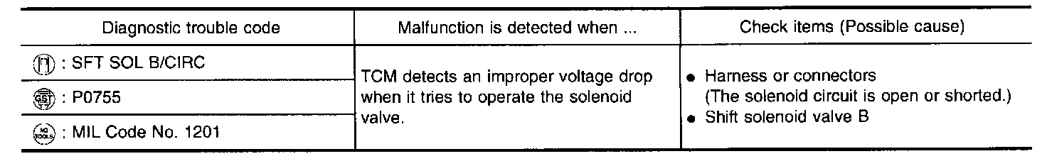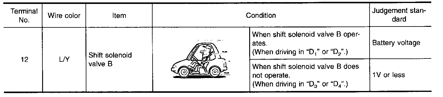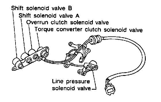 Shift solenoid valves A and B are turned "ON" or "OFF" by the TCM in response to signals sent from the PNP switch, vehicle speed and throttle position sensors. Gears will then be shifted to the optimum position.
