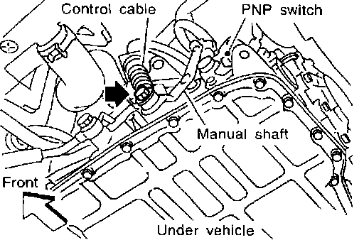 3. If OK on step 2, adjust manual control cable. Refer to Shift Cable, A/T; Adjustments.