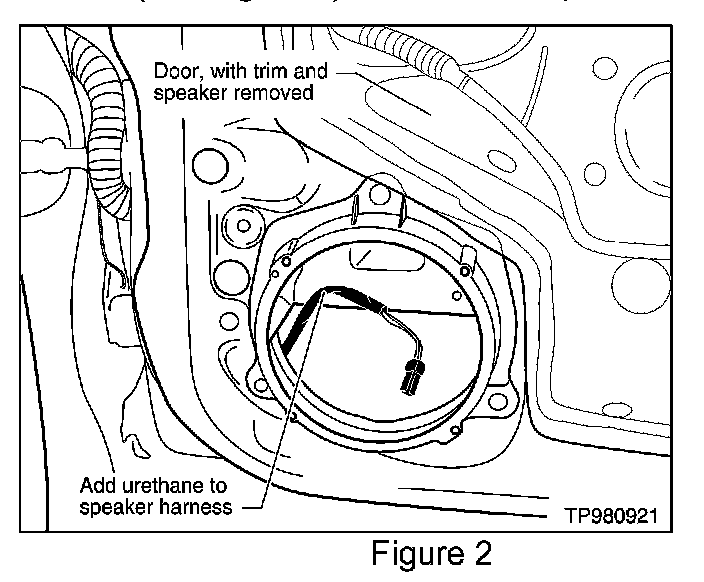 3. Cover the speaker harness (see Figure 2) with urethane pad P/N 76268-9E005.