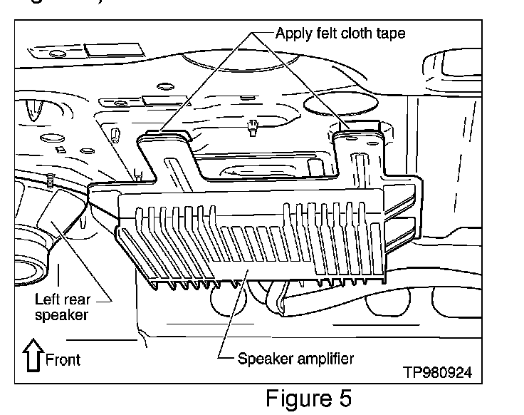 This incident may be duplicated by tapping or knocking on rear parcel shelf. This incident may be caused by intermittent contact between the rear parcel shelf and the speaker amplifier (see Figure 5).