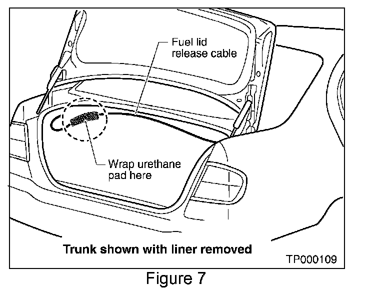 4. Apply urethane pad (P/N 76268-9E005) to the fuel lid release cable (see Figure 7).