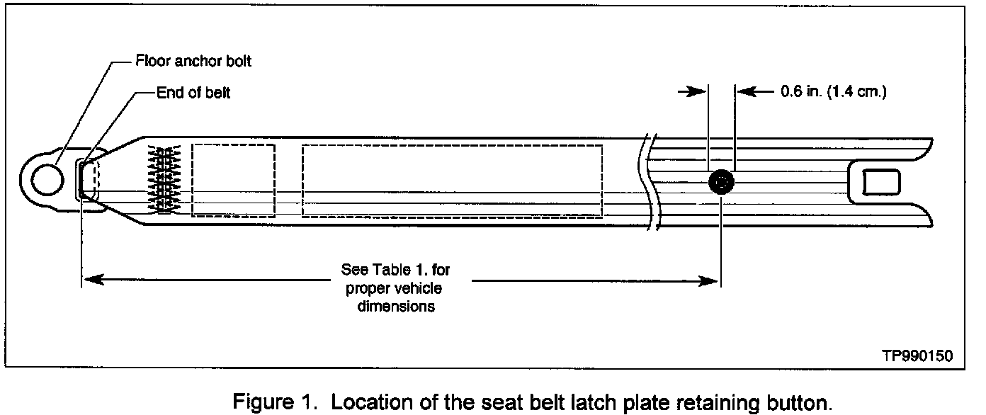 CAUTION: It is important that the replacement button be positioned exactly where the original button was placed at the factory. Figure 1 shows the location of the button, and Table 1 provides the dimensions from the end of the belt. Use the existing hole whenever Possible.