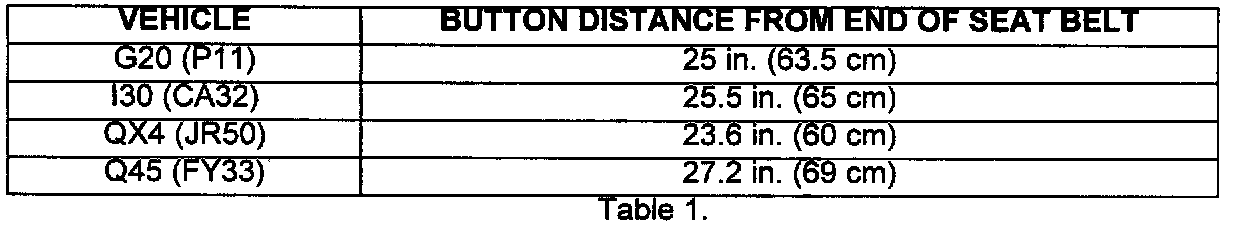 1999 G20, 1996-99 I30, 1997-99 Q45 AND 1997-99 QX4 FRONT SEAT BELT LATCH PLATE RETAINING BUTTON MISSING