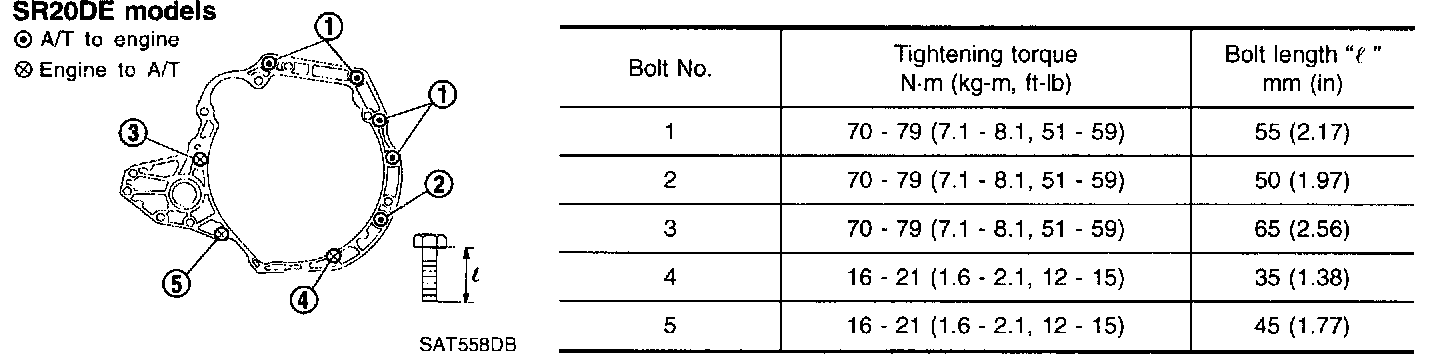 Tightening Torque: 41 - 52 Nm (4.2 - 5.3 kg-m, 30 - 38 ft. lbs.)
