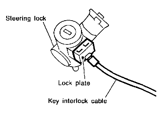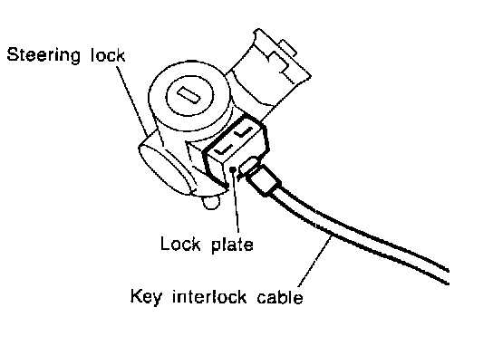 1. Set key interlock cable to steering lock assembly and install lock plate.