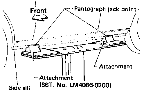 ^ The board-on lift attachment (LM4086-0200) set at front end of vehicle should be set on the front of the sill under the front door opening.