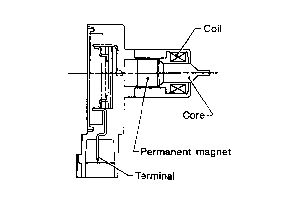 The sensor consists of a permanent magnet, core and coil. When engine is running, the gap between the sensor and the gear teeth (cogs) will periodically change. Permeability near the sensor also changes.