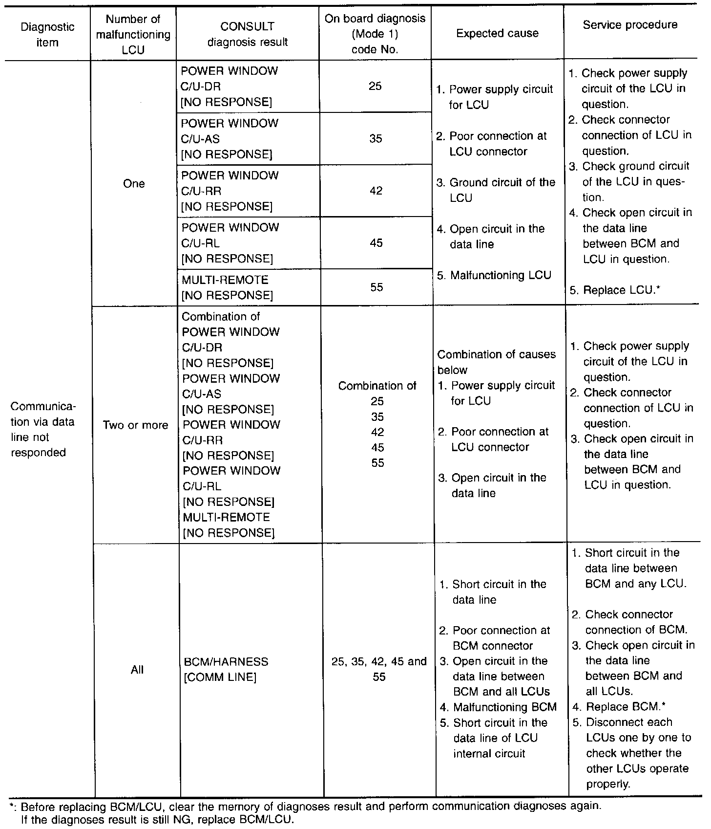 ^ When CONSULT indicates [PAST COMM FAIL] or [PAST NO RESPONSE], erase the memory and perform communication diagnosis again.