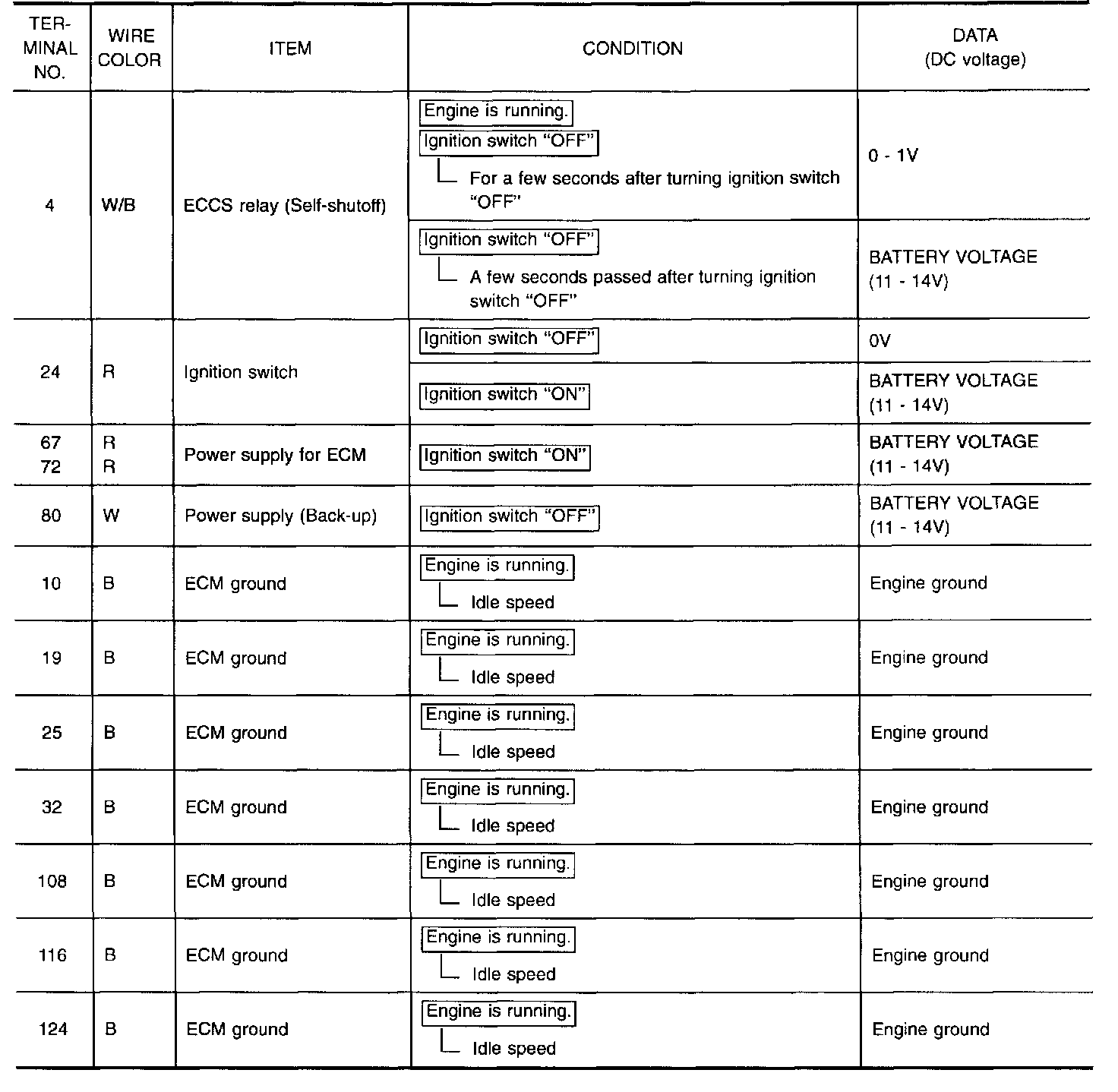 Specification data are reference values, and are measured between each terminal and (25) (ECM ground).