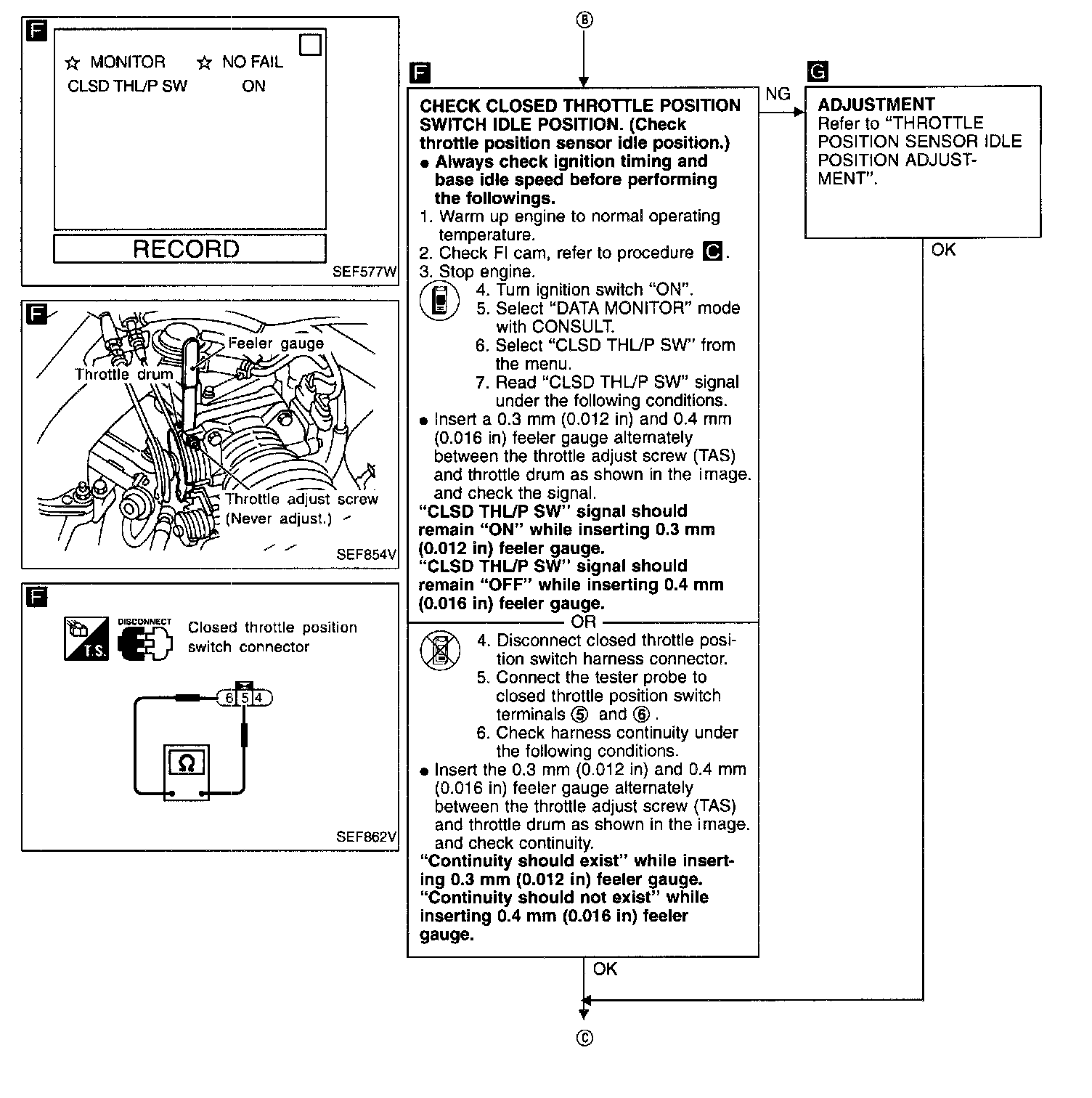 Check that the "CLSD THL/P SW" signal remains "OFF" while closing throttle valve. If NG, repeat from the step 4.