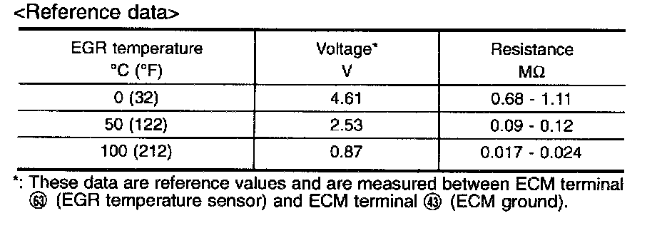 The EGR temperature sensor detects temperature changes in the EGR passage way. When the EGR volume control valve opens, hot exhaust gases flow, and the temperature in the passage way changes. The EGR temperature sensor is a thermistor that modifies a voltage signal sent from the ECM. This modified signal then returns to the ECM as an input signal. As the temperature increases, EGR temperature sensor resistance decreases.