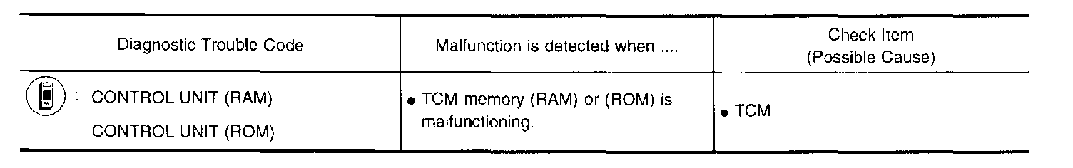 The TCM consists of a microcomputer and connectors for signal input and output and for power supply. The unit controls the A/T.