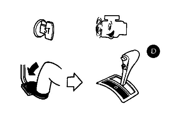 2. Start engine, apply foot brake, place selector lever in "D" position and wait a few minutes.