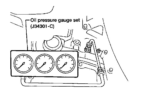- Continue to depress brake pedal fully while line pressure test is being performed at stall speed.