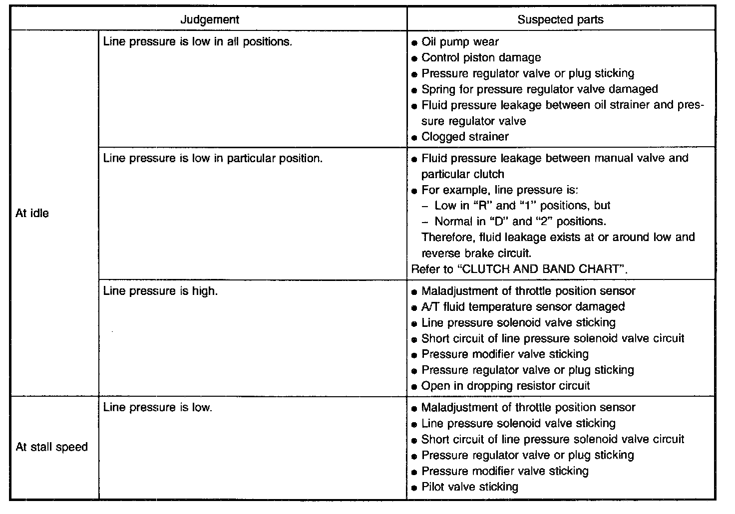 - When measuring line pressure at stall speed, follow the stall test procedure.