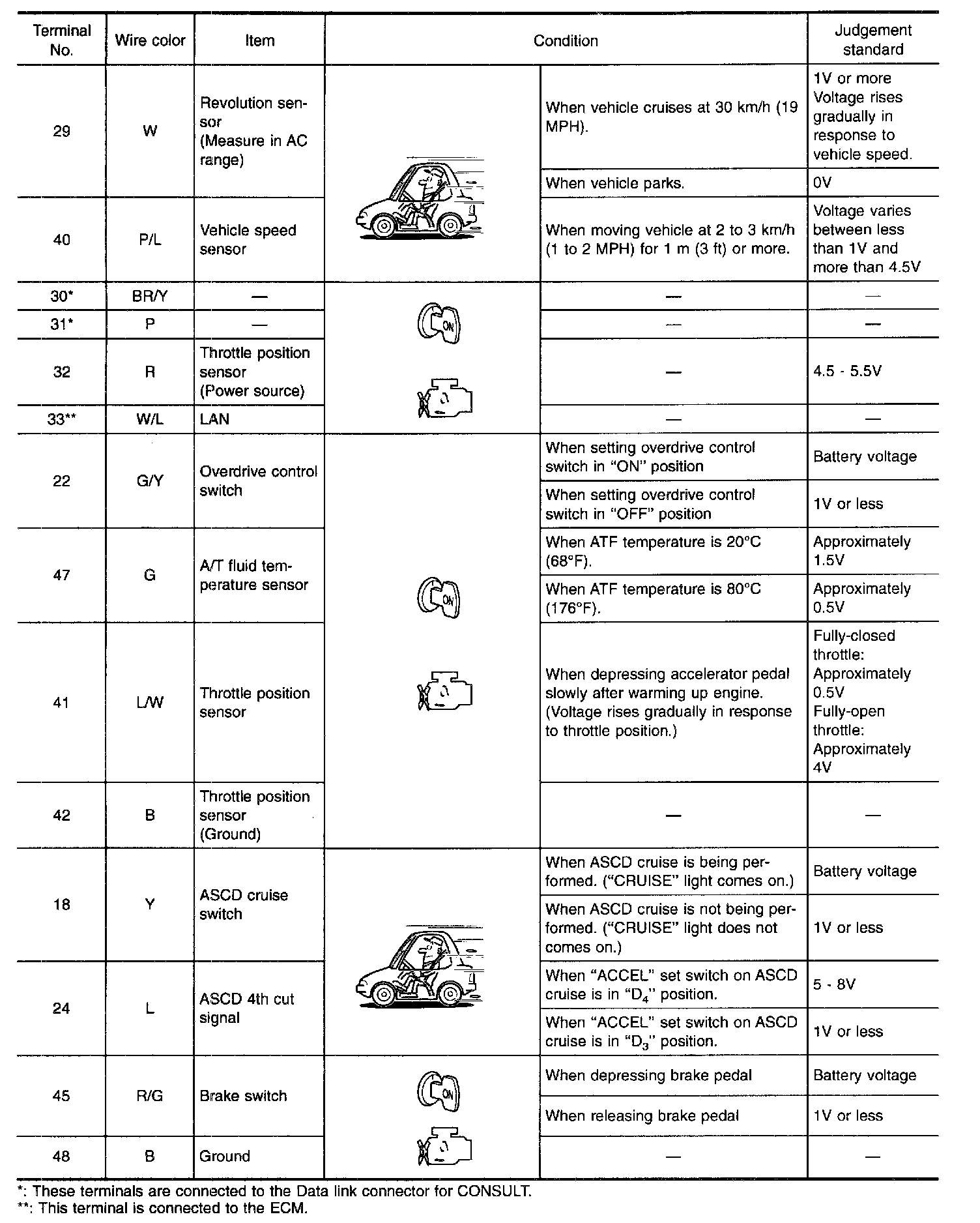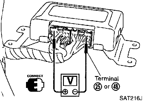 Measure voltage between each terminal and terminal (25) or (48) by following "