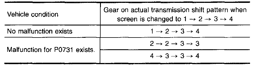 7. Follow the instruction displayed. (Check for normal shifting referring to the table below.)