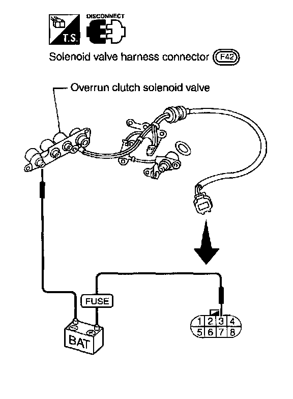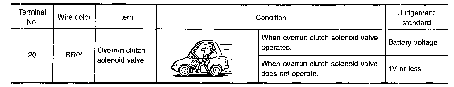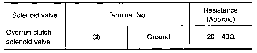 The overrun clutch solenoid valve is activated by the TCM in response to signals sent from the PNP switch, overdrive control switch, vehicle speed and throttle position sensors. The overrun clutch operation will then be controlled.