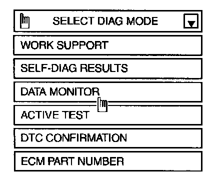 1. Turn ignition switch "ON" and select "DATA MONITOR" mode for "ENGINE" with CONSULT.