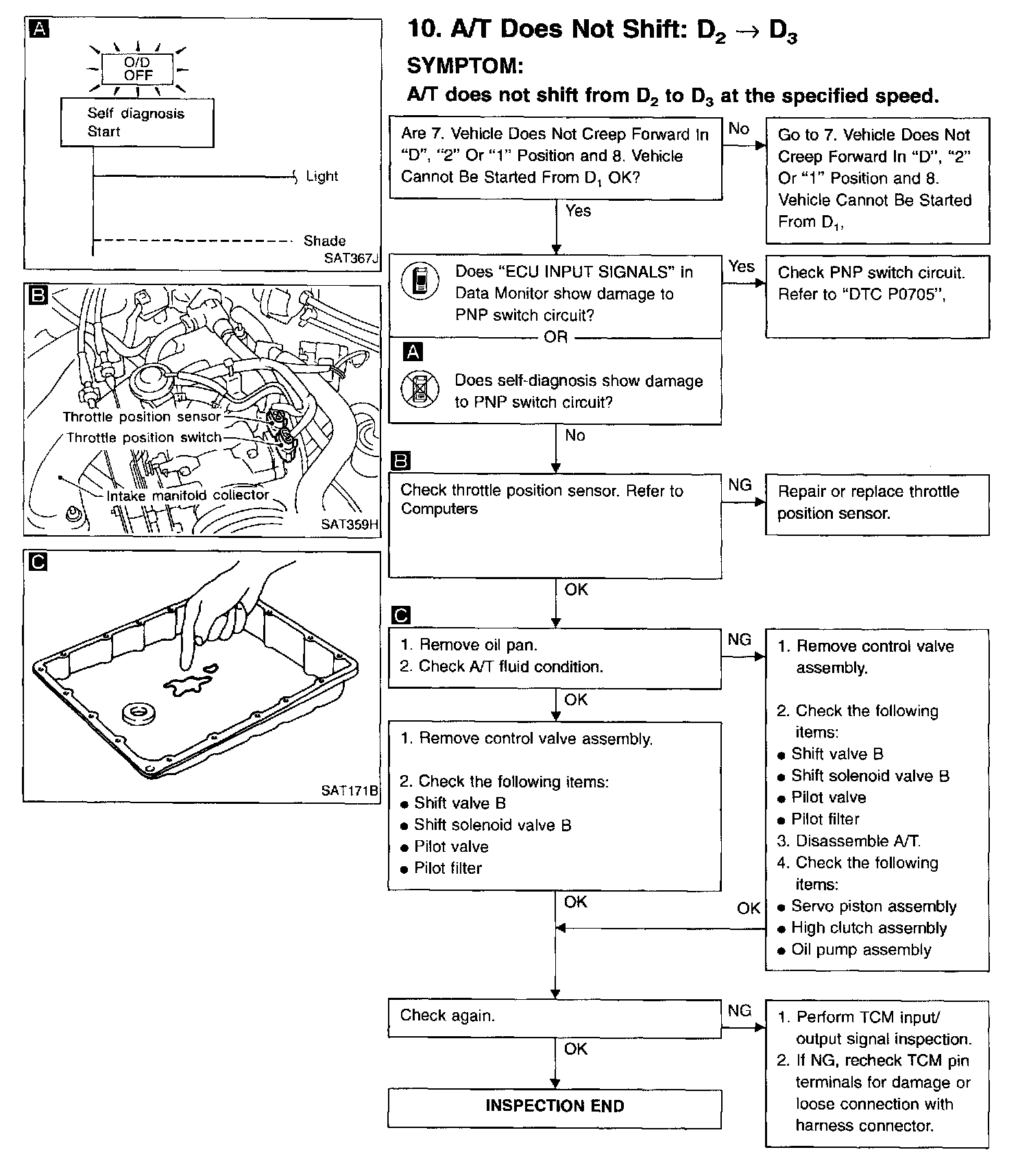 SYMPTOM: A/T does not shift from D2 to D3 at the specified speed.