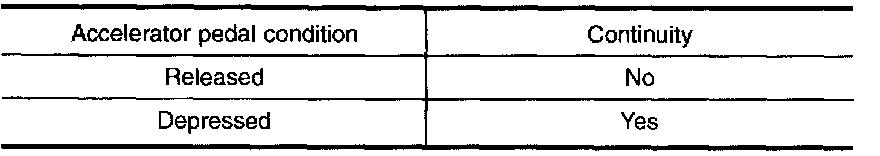 Consists of a wide open throttle position switch and a closed throttle position switch. The wide open throttle position switch sends a signal to the TCM when the throttle valve is open at least 1/2 of the full throttle position. The closed throttle position switch sends a signal to the TCM when the throttle valve is fully closed.