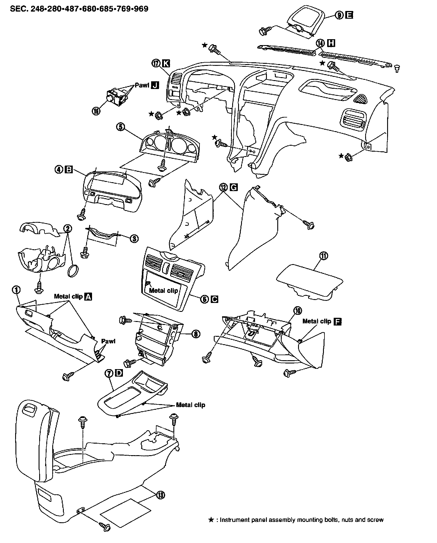 - The special bolts are coated with bonding agent while the other bolt is for ground. Do not use old bolts after removal; replace with new ones.