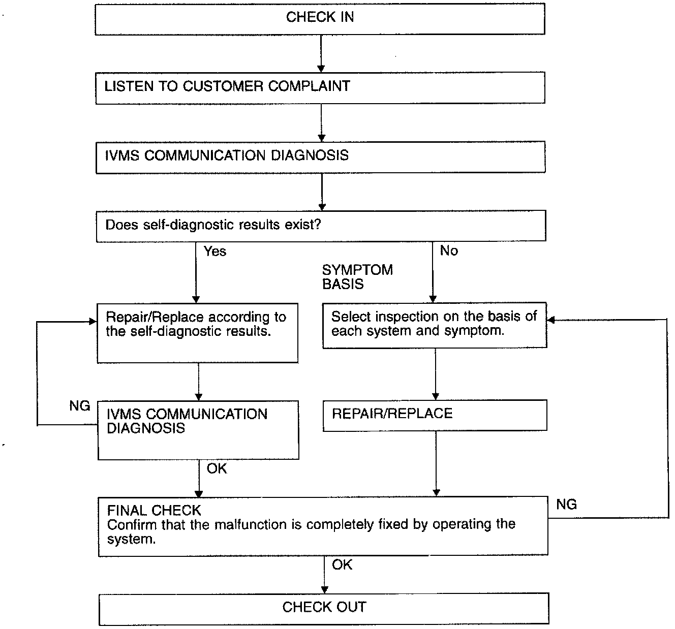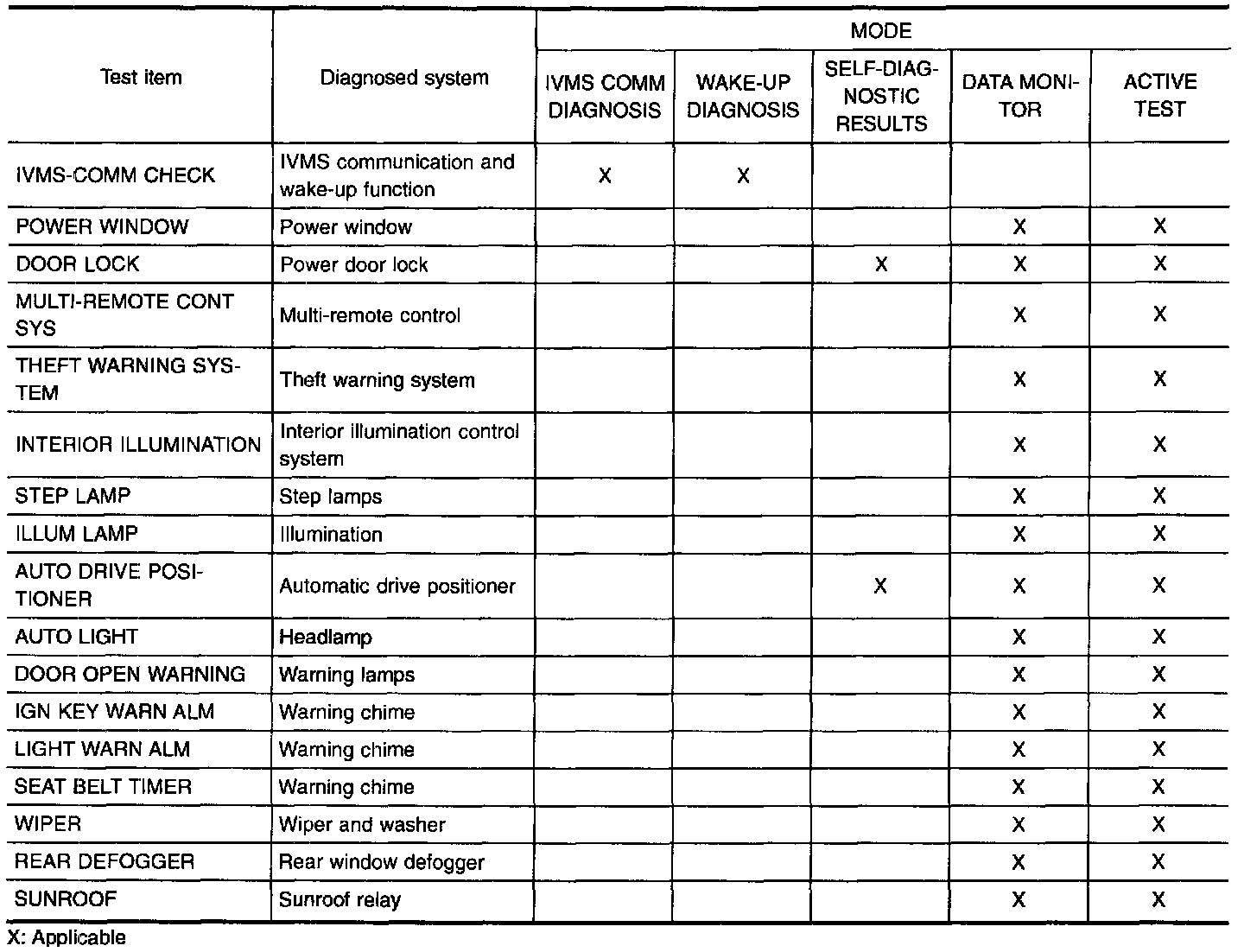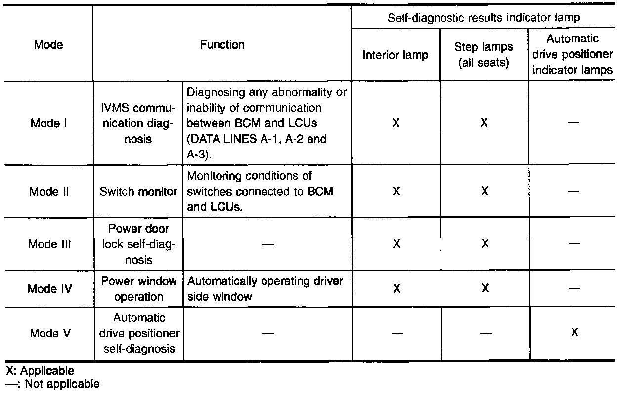 - When on board diagnosis Mode I, II, III and IV is operating, all systems under IVMS control do not operate.