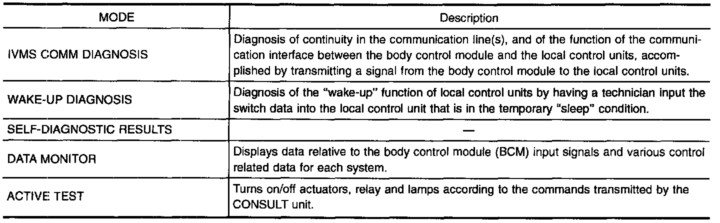 NOTE: When CONSULT diagnosis is operating, some systems under IVMS control do not operate.