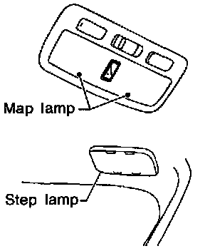 Front map lamps and step lamps (all seats) act as the indicators for the on-board diagnosis Mode I, II, III and IV. Seat memory indicator-1 and 2 act as the indicators for the on-board diagnosis Mode V. These lamps blink simultaneously in response to diagnostic results.