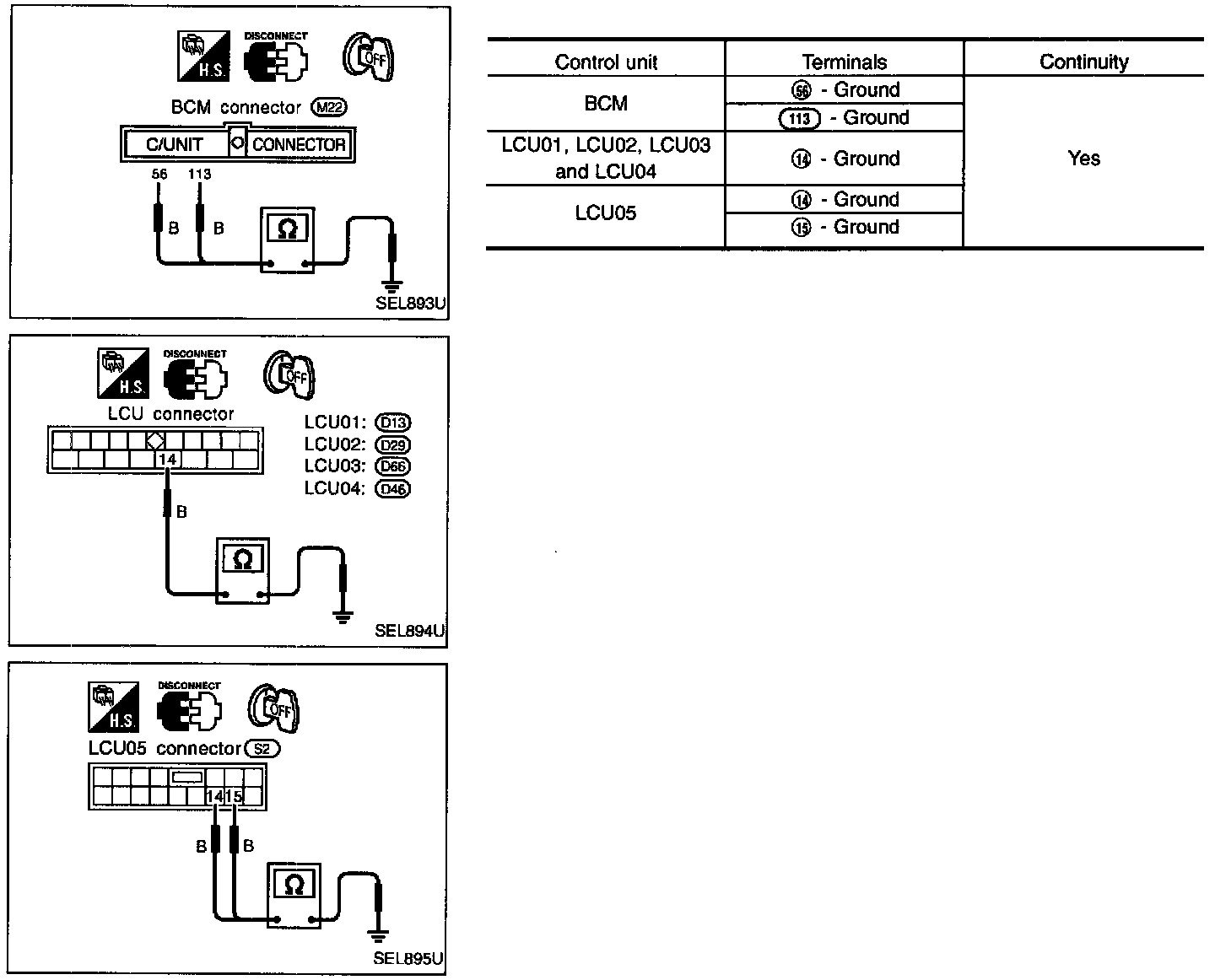 1. Disconnect BCM and all LCU connectors.
