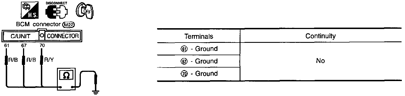 2. Check continuity between BCM terminal and body ground.