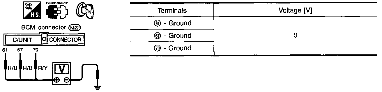 3. Check voltage between BCM terminal and body ground.