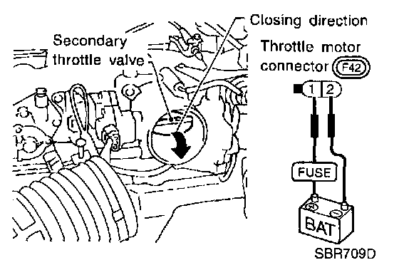 2. Disconnect connector. Manually push throttle valve to ensure that it moves properly from fully closed to fully open position.