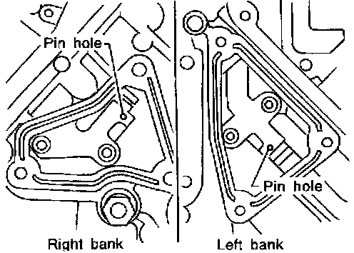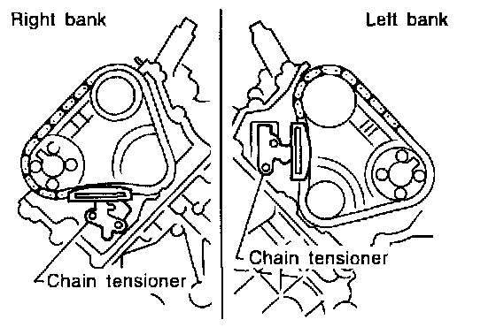 - After removing timing chain, do not turn crankshaft and camshaft separately, or valves will strike piston heads.
