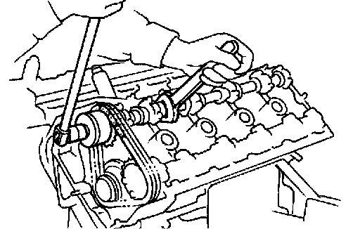 13. Remove camshaft sprocket bolt while holding the hexagonal part of camshaft with wrench.