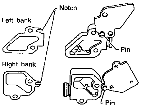 - Install gasket by pressing the notch on pin connecting chain tensioner to plate.