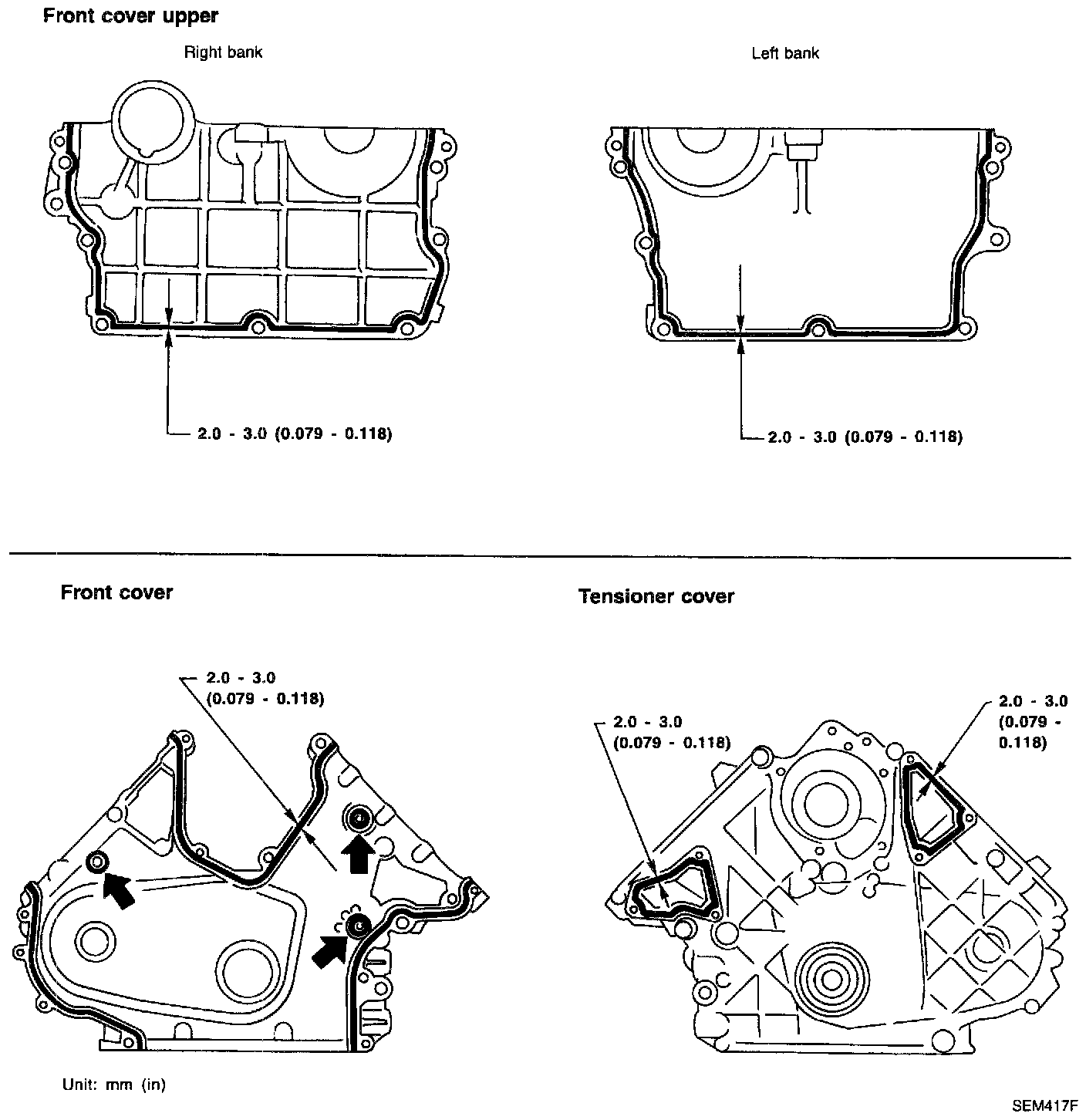 - When installing camshafts, chain tensioners, oil seals, or other sliding parts, lubricate contacting surfaces with new engine oil.