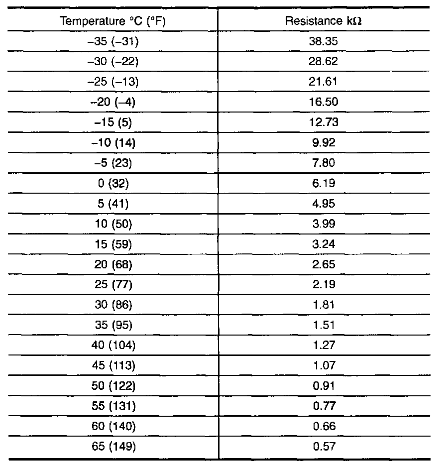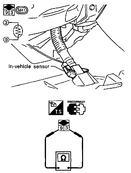 harness connector, measure resistance between terminals (3) and (9) at sensor harness side, using the table.