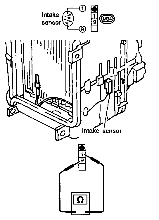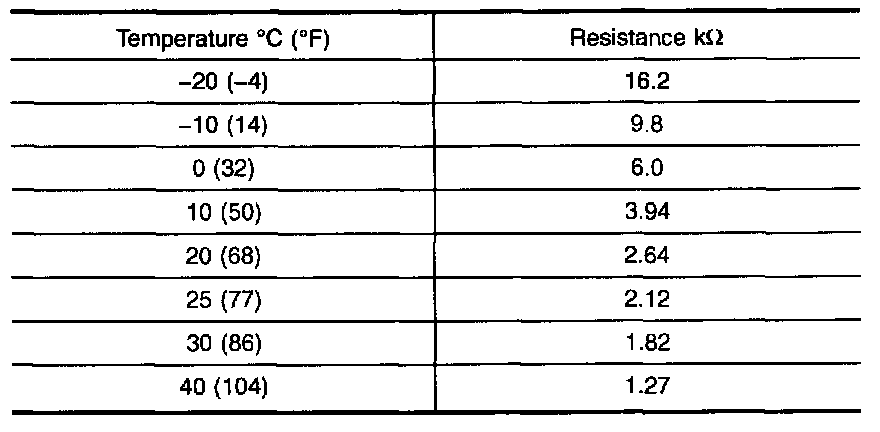 harness connector, measure resistance between terminals (1) and (9) at sensor harness side, using the table.