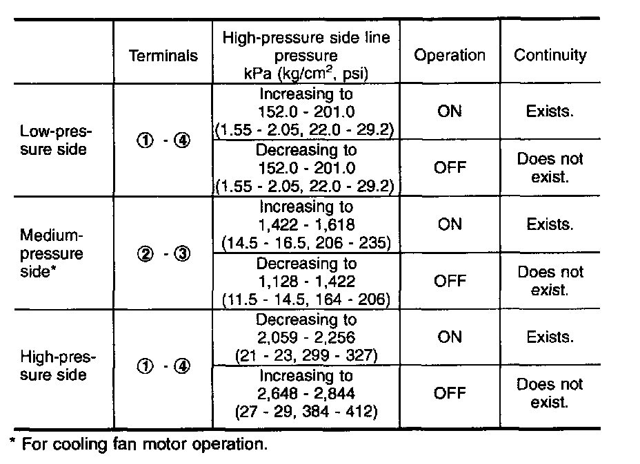 Refrigerant Pressure Sensor / Switch: Testing and Inspection